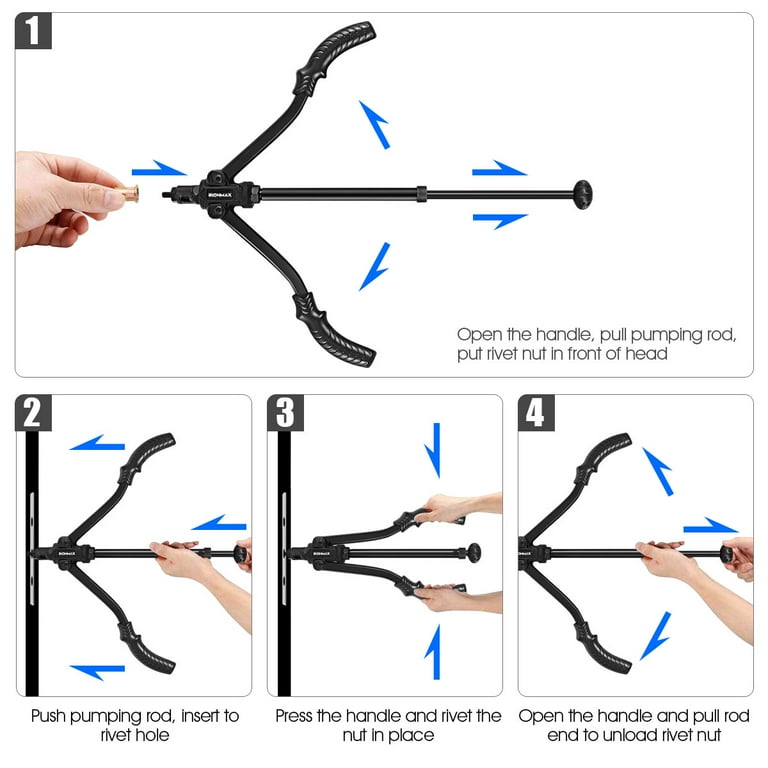 Amazon Com Beetro 14 Rivet Nut Tool Professional Hand Rivet Nut Gun Riveter With 7 Metric Inch Mandrels 70pcs Rivet Nuts Including Wrench And Two Lock Pins And A Pair Of Gloves